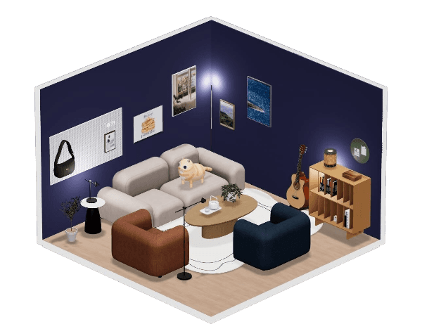 - 관심있는 제품들을 배치해보며 원하는 컨셉의 공간을 만들 수 있고, 다른 사람들이 꾸민 방을 구경하며 공간에 대한 영감과 제품에 대한 정보를 얻을 수 있는 서비스예요.