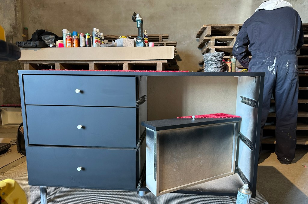 한국 분들 뿐 아니라 외국 분들도 이번 업사이클링 해커톤에 참여하셨습니다. 스트리트 아트(Street Art) 작업을 해오신 제임스 벡위드님은 데칼협동조합의 소개로 이번 해커톤에 참여하셨요. 새벽부터 서울 작업실에서 차를 몰고 신안까지 오셨죠. 제임스님은 상부에 큰 스크래치가 있는 긴 수납장을 업사이클 하고 계셨습니다.
