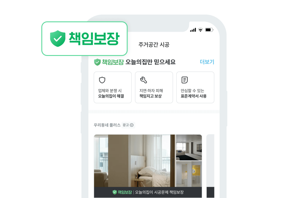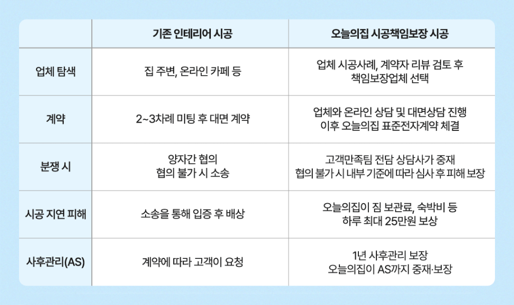 인테리어 공사 도중 하자가 발생하거나 시공 일정이 계약보다 지연될 때 오늘의집이 직접 나서 소비자 문제를 해결해 주는 거죠.