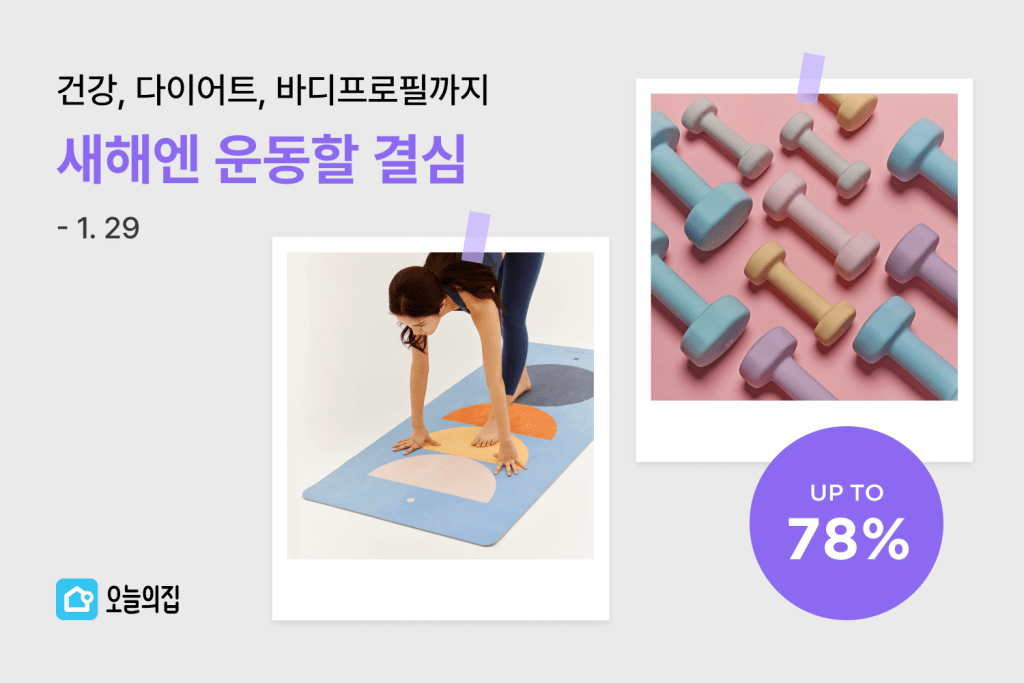새해를 맞아 건강한 라이프를 위한 운동 계획을 세우는 이들이 많다. 라이프스타일 슈퍼앱 오늘의집은 홈트레이닝 용품을 다양한 혜택과 함께 제공하는 ‘운동할 결심’ 기획전을 연다고 25일 밝혔다. 오는 29일까지 총 90여 곳 브랜드의 800여 개 상품을 최대 78% 할인한 가격에 판매한다.