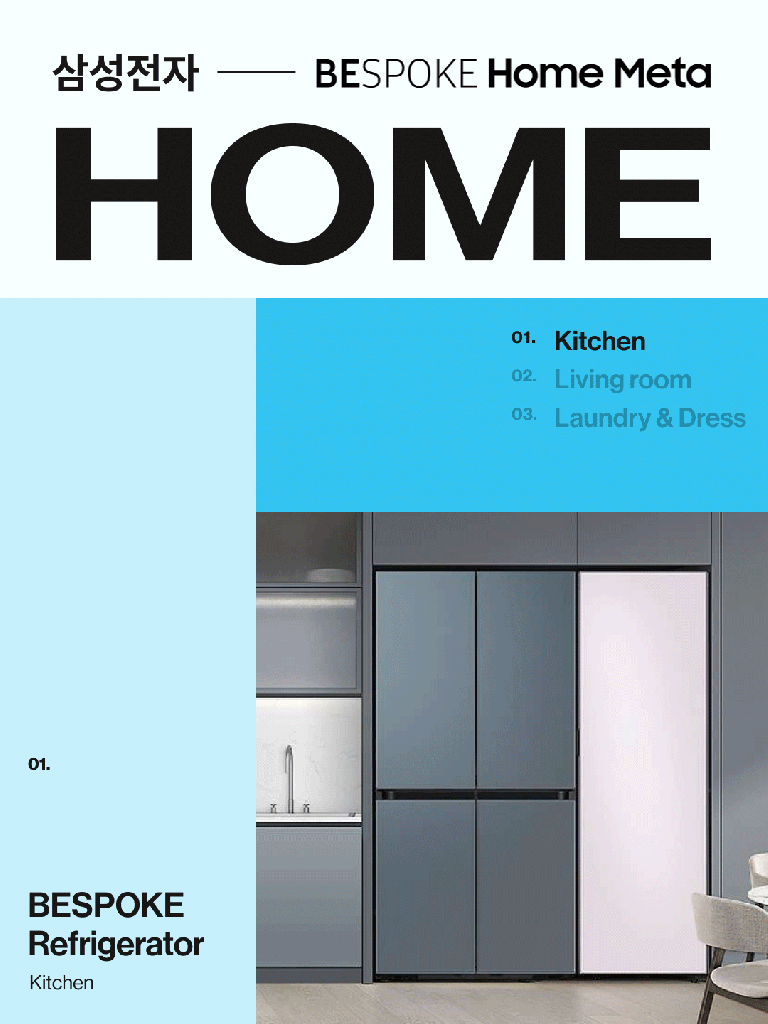 ‘삼성 비스포크 홈메타’는 냉장고부터 에어컨, 공기청정기 등 다양한 비스포크 제품들을 3D 가상공간에서 배치해보고 구매까지 할 수 있는 가전 시뮬레이터 서비스다. 고객은 다양한 컨셉으로 구성된 가상의 집에 삼성전자 비스포크 제품을 인테리어와 매칭하며 재미있고 손쉽게 우리집에 어울리는 제품을 찾을 수 있다.