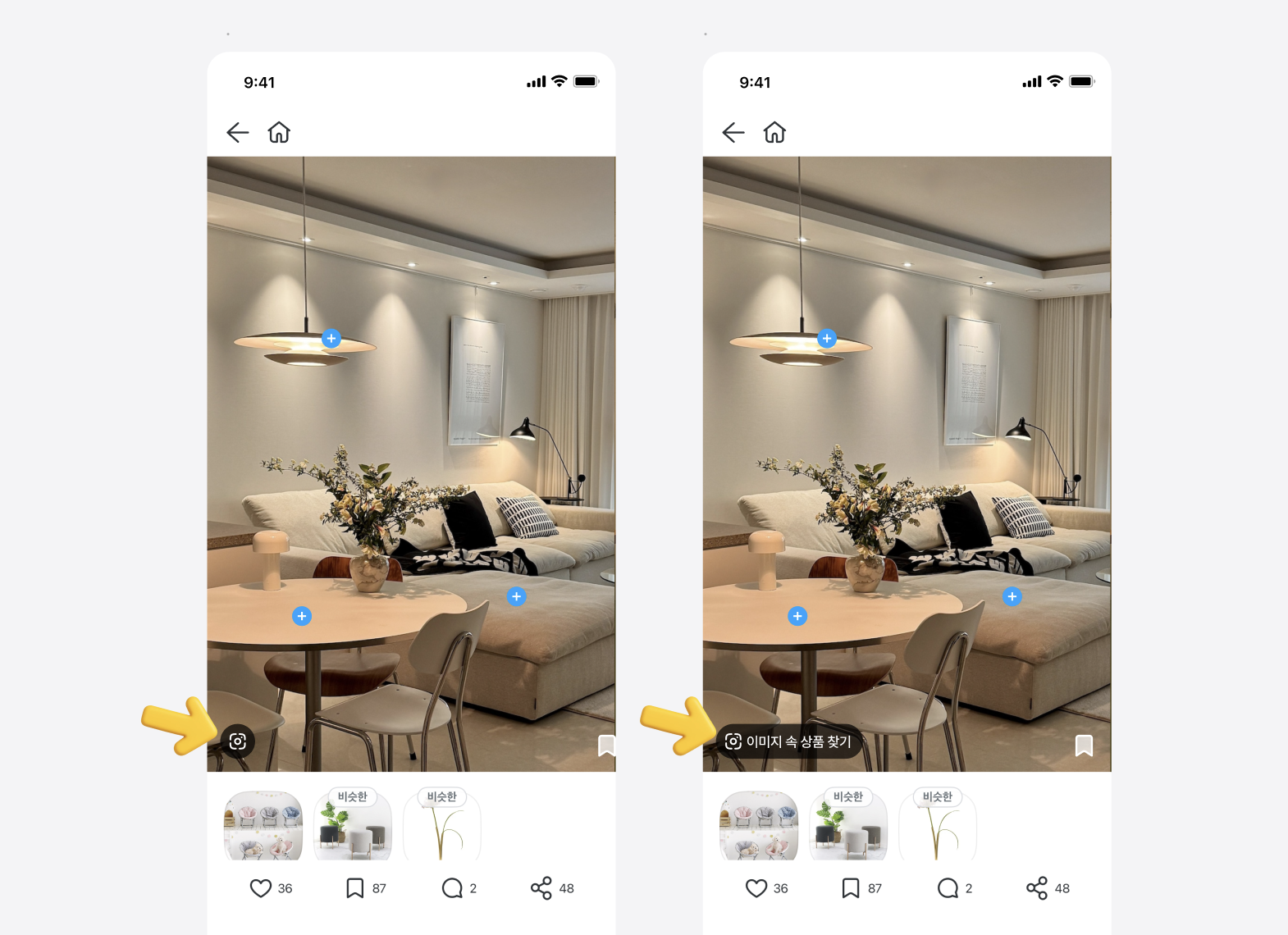 이제 집들이 콘텐츠를 보다가 “이거 궁금한데?” 싶은 아이템이 있으면 비슷한 제품을 바로 찾아볼 수 있어요.